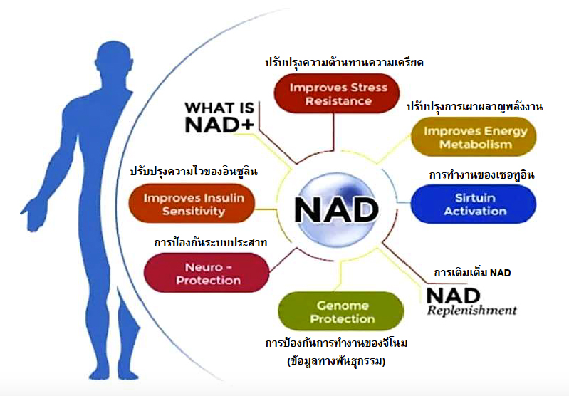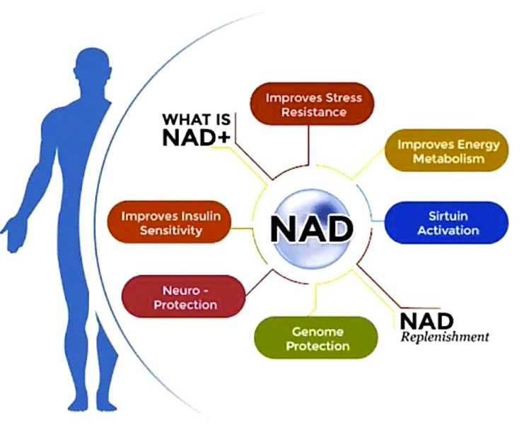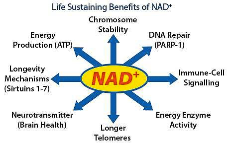 Nicotinamide adenine dinucleotide (NAD+) is an essential cofactor in all living cells that is involved in fundamental biological processes and is essential component of energy production (mitochondrial function):
