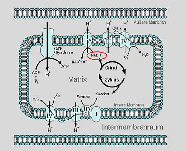 - In the respiratory chain of the mitochondria, NADH is under Consumption of oxygen is oxidized to NAD+