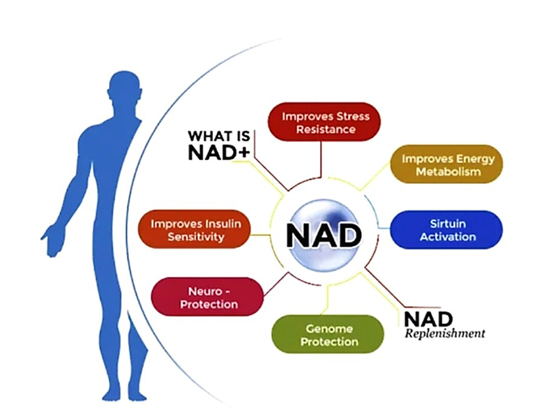 Nicotinamide Adenine Dinucleotide (NAD+) is a universal cellular electron transporter, coenzyme, and signaling molecule present in all cells of the body and is essential for cell function and viability. Along with NAD+, its reduced (NADH)